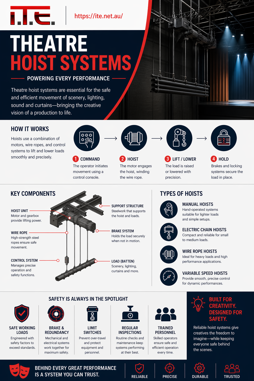 This guide breaks down the different types of theatre hoist systems available, helping you understand which solution best fits your performance needs.